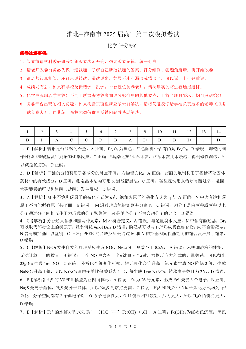 安徽省淮北市和淮南市2025届高三第二次质量检测 化学答案.pdf