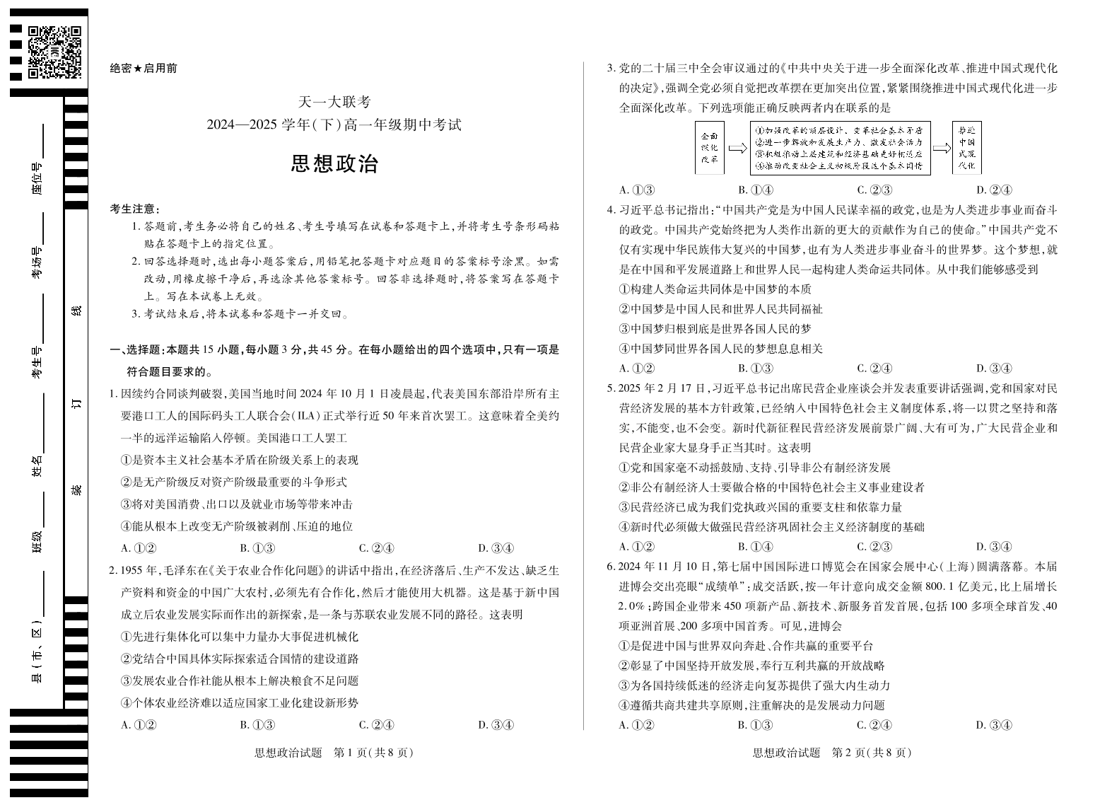 天一大联考·2024-2025学年(下)高一年级期中考试 政治.pdf