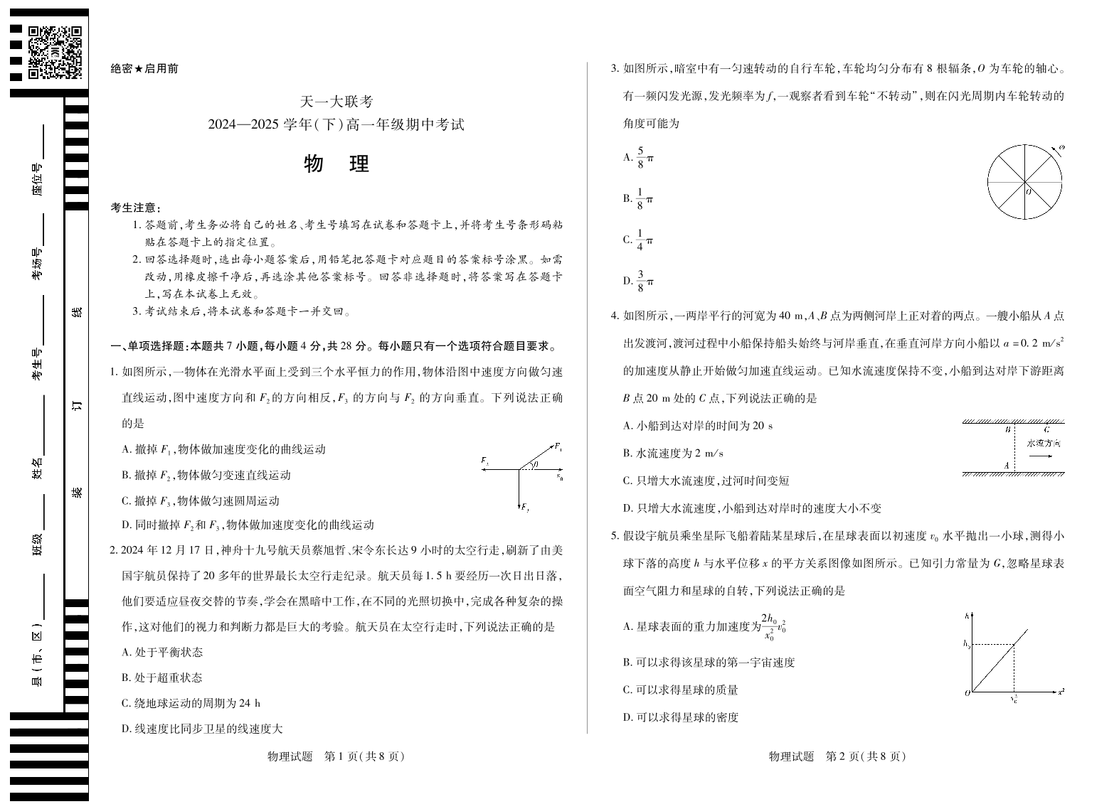 天一大联考·2024-2025学年(下)高一年级期中考试 物理.pdf