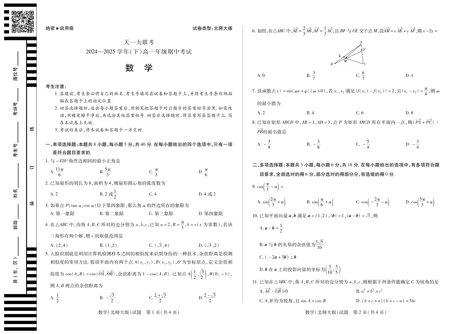 天一大联考·2024-2025学年(下)高一年级期中考试 数学(北师大版).pdf