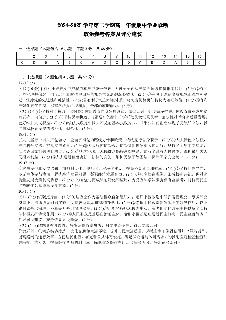 太原市2024-2025学年第二学期高一年级期中学业诊断 政治答案.pdf