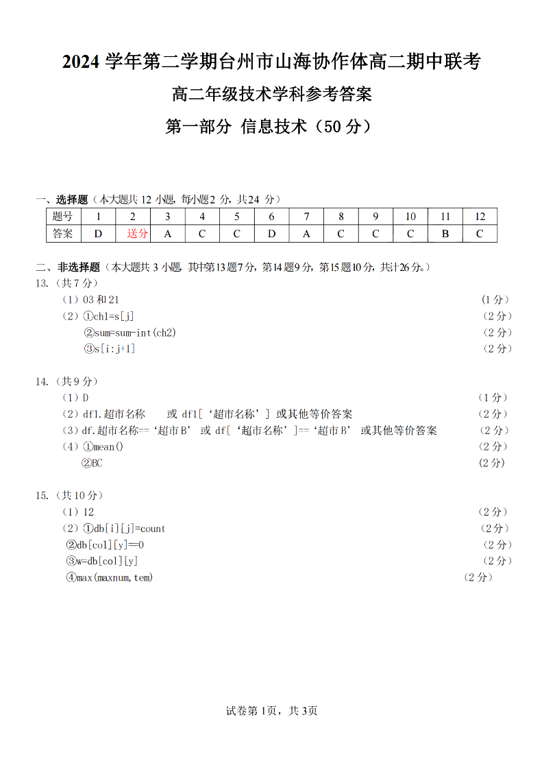 台州市山海协作体2024学年高二第二学期期中联考 技术答案.pdf