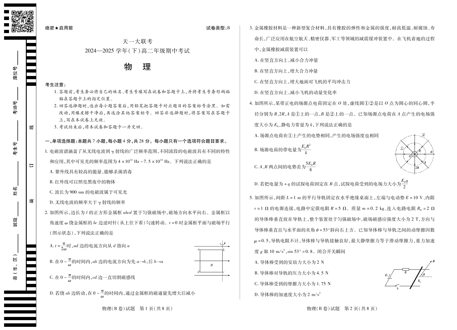 天一大联考·2024-2025学年(下)高二年级期中考试 物理B卷.pdf