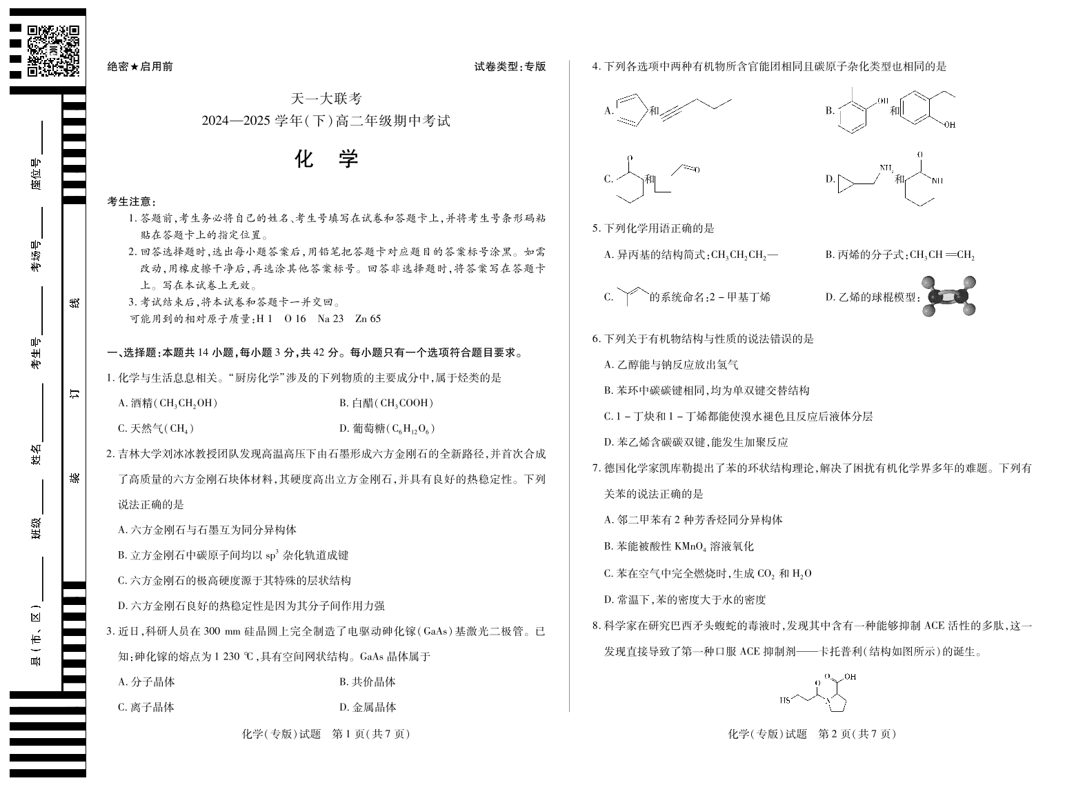 天一大联考·2024-2025学年(下)高二年级期中考试 化学濮阳专版.pdf