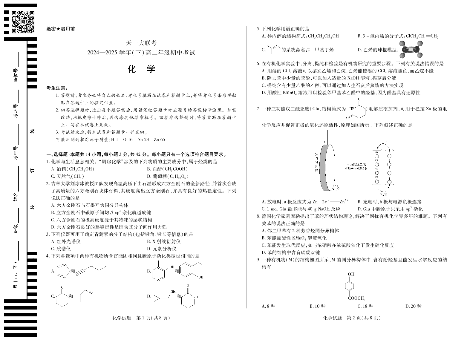 天一大联考·2024-2025学年(下)高二年级期中考试 化学.pdf