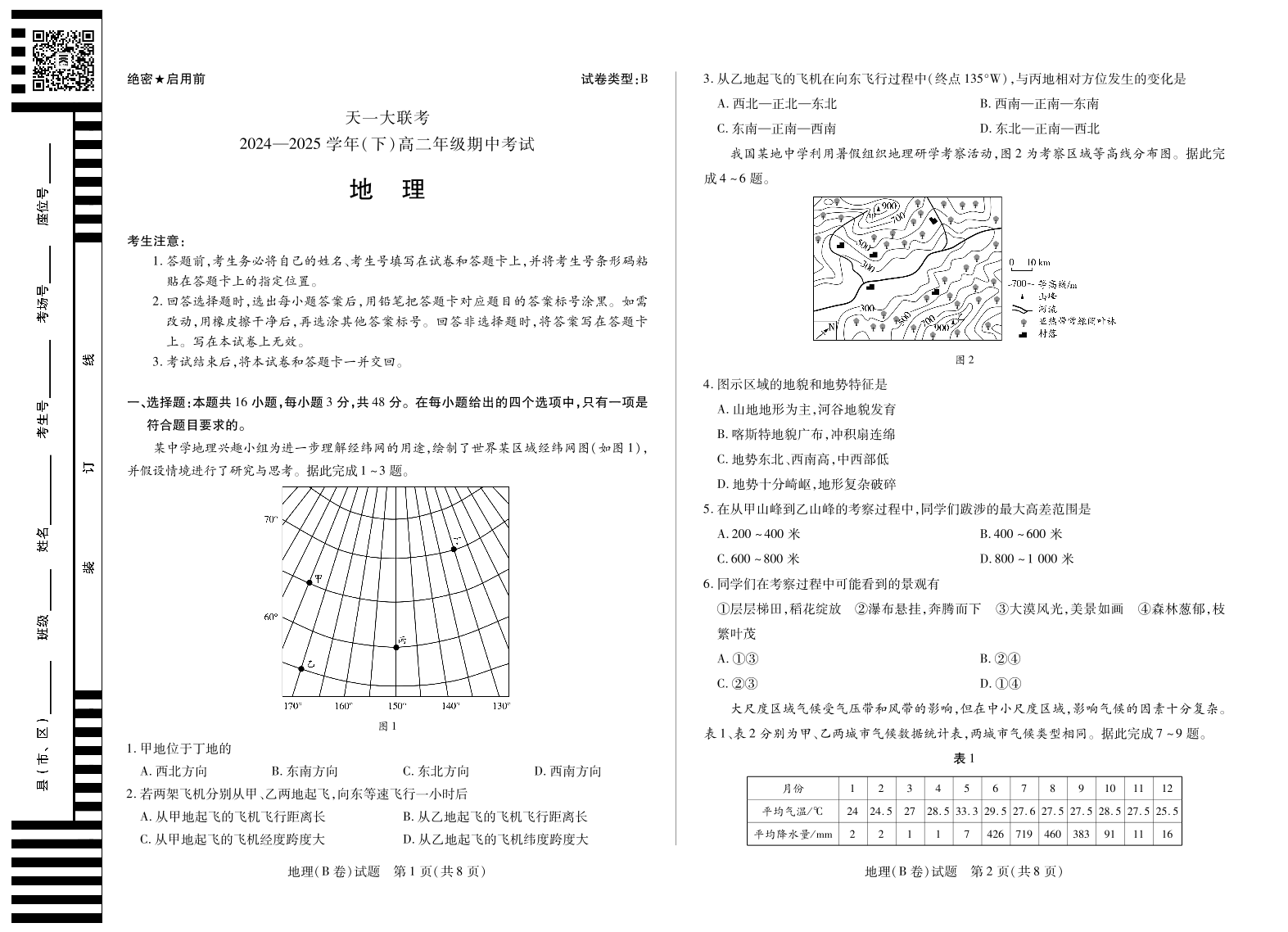 天一大联考·2024-2025学年(下)高二年级期中考试 地理B卷.pdf