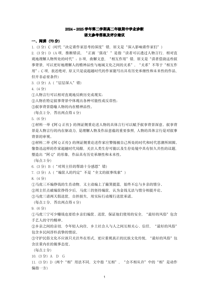 太原市2024-2025学年第二学期高二年级期中学业诊断 语文答案.pdf