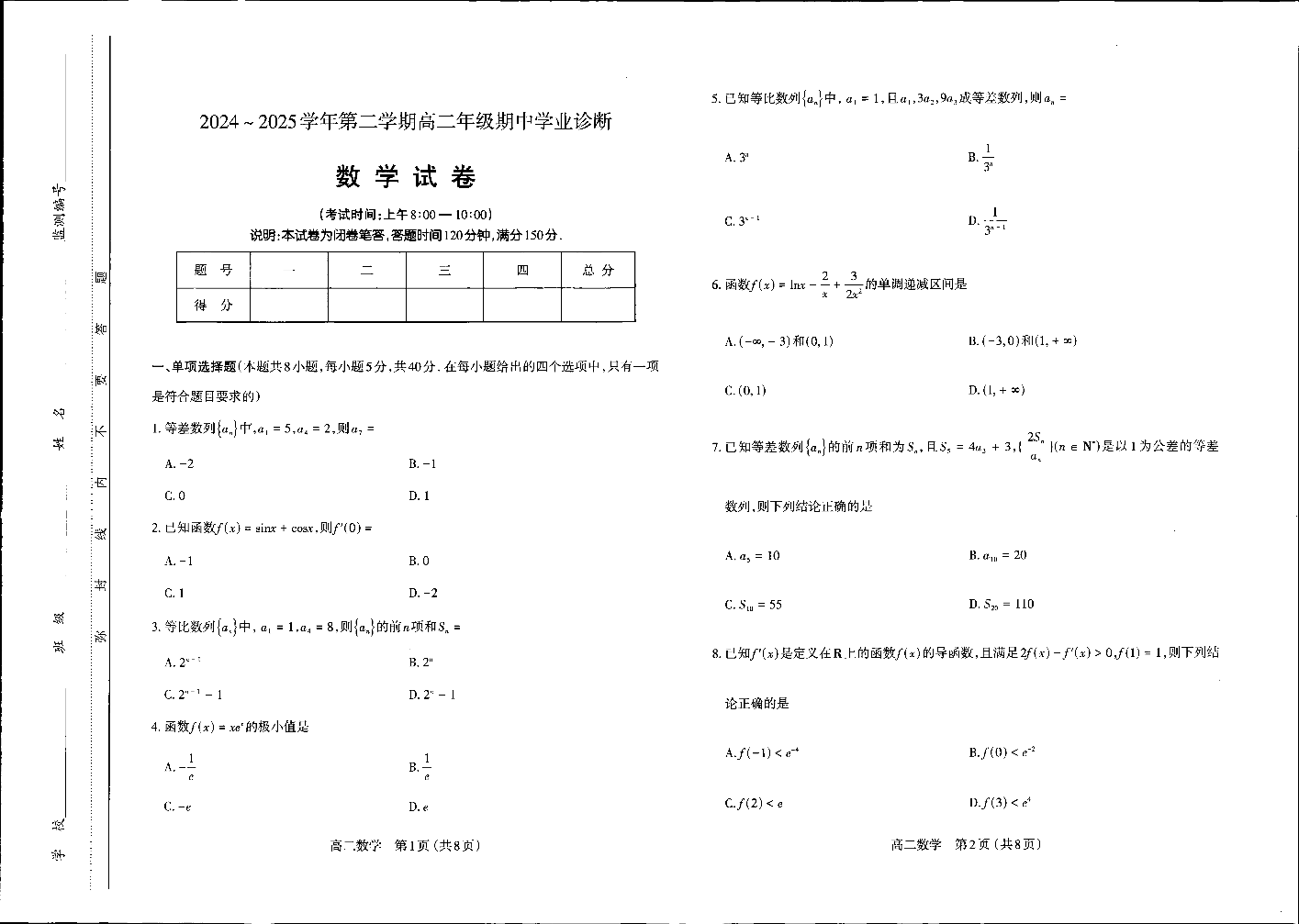 太原市2024-2025学年第二学期高二年级期中学业诊断 数学.pdf