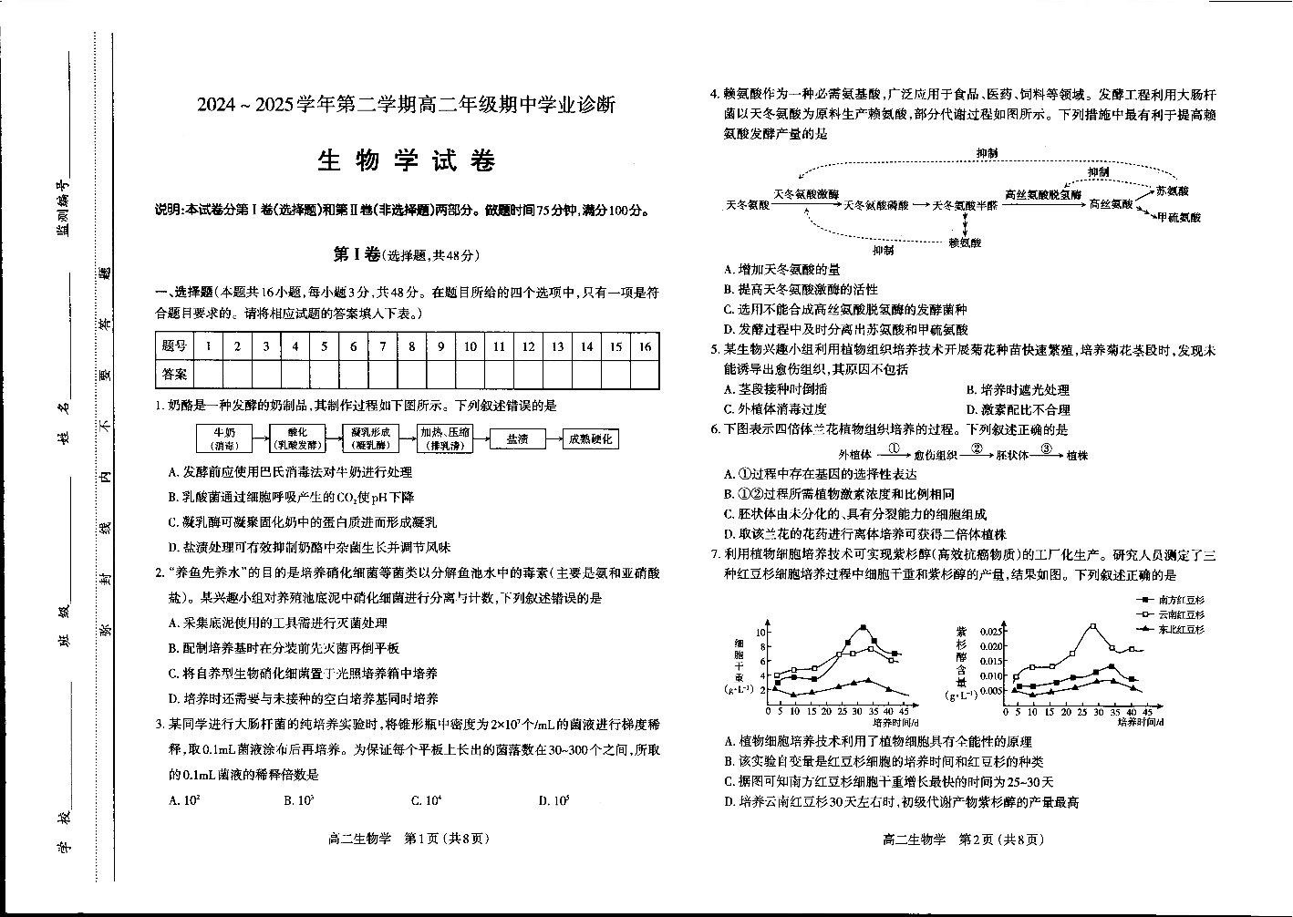 太原市2024-2025学年第二学期高二年级期中学业诊断 生物.pdf