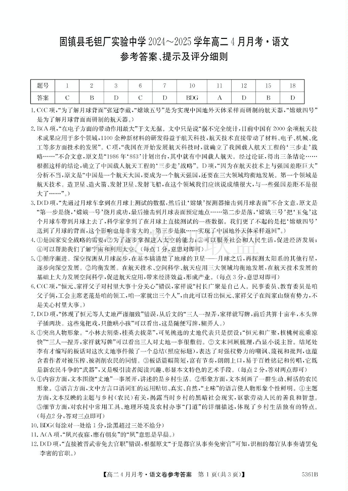 安徽省固镇县毛钽厂实验中学2024-2025学年高二下学期4月月考 语文答案.pdf
