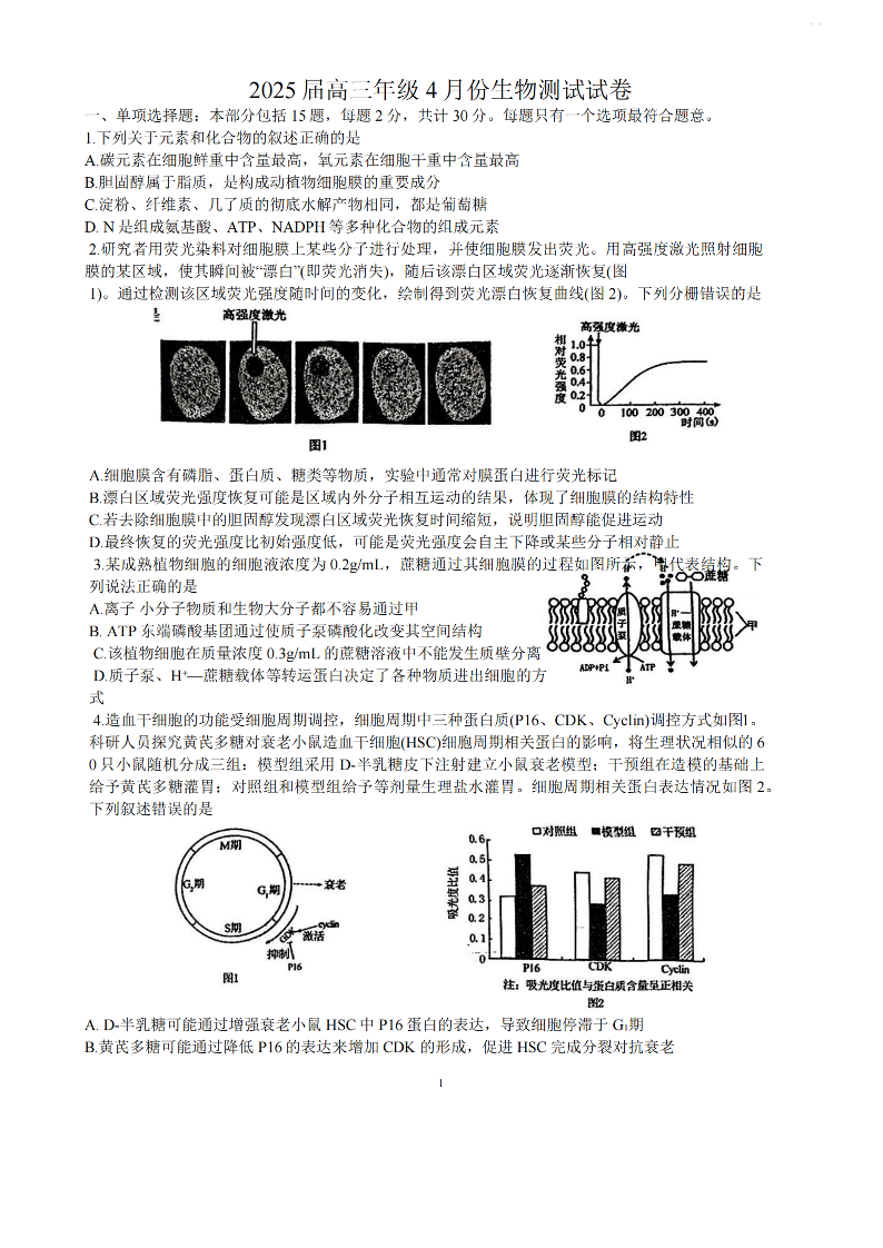 江苏省海安、金陵、宿迁三校2025届高三年级4月份测试 生物(含答案).pdf
