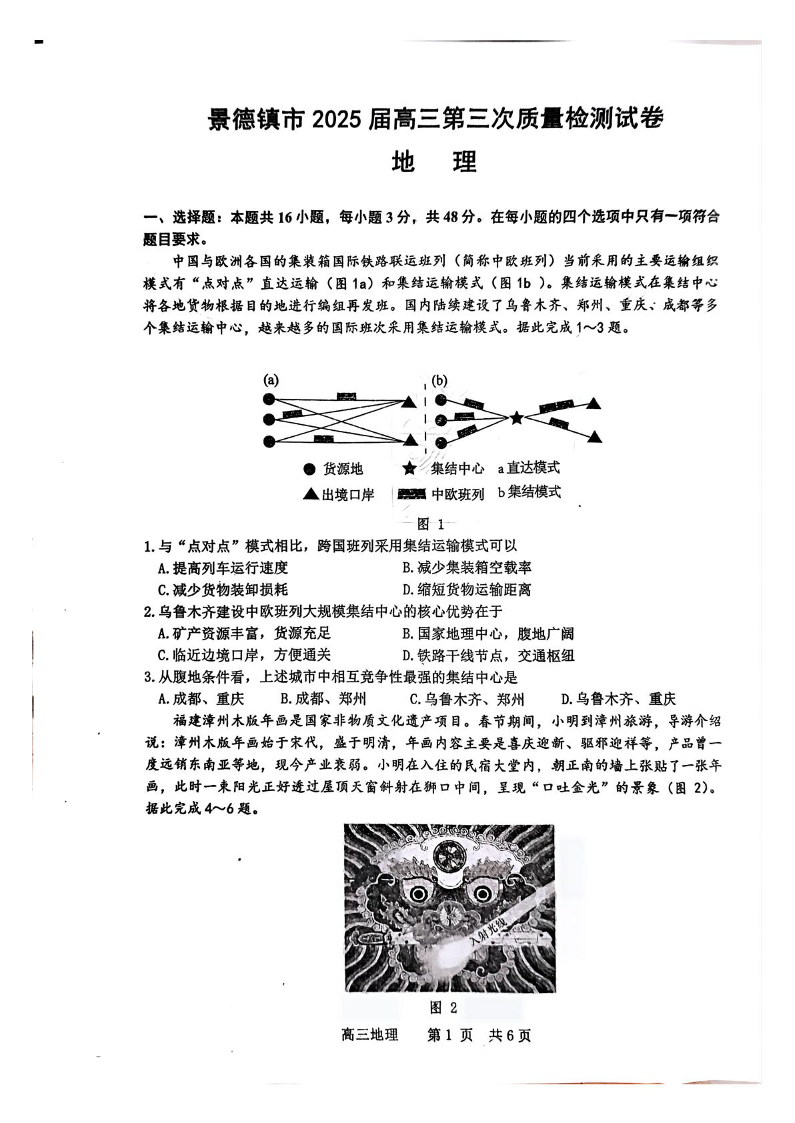 江西省景德镇市2025届高三第三次质量检测 地理(含答案).pdf