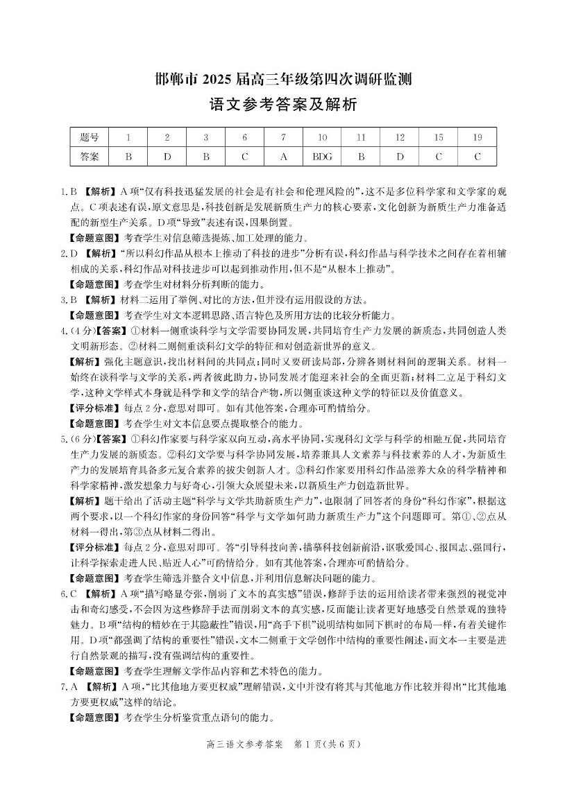 河北省邯郸市2025届高三年级第四次调研监测 语文答案.pdf