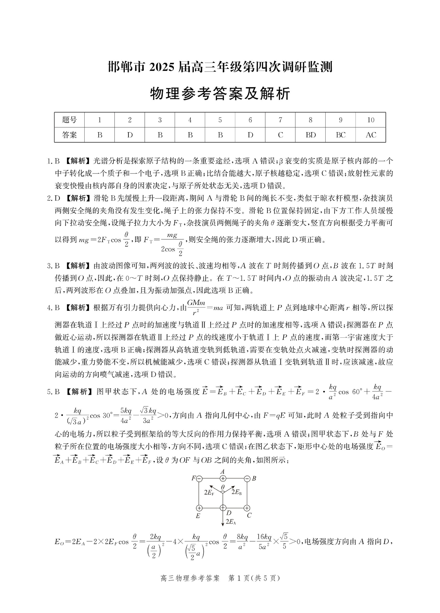 河北省邯郸市2025届高三年级第四次调研监测 物理答案.pdf