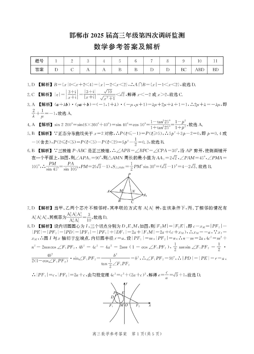 河北省邯郸市2025届高三年级第四次调研监测 数学答案.pdf