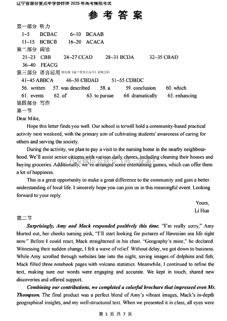 辽宁省部分重点中学协作体2025年4月高考模拟考试 英语答案.pdf