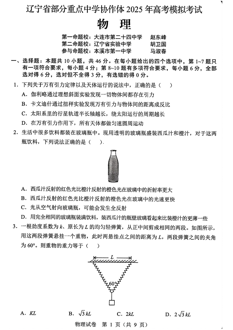 辽宁省部分重点中学协作体2025年4月高考模拟考试 物理.pdf