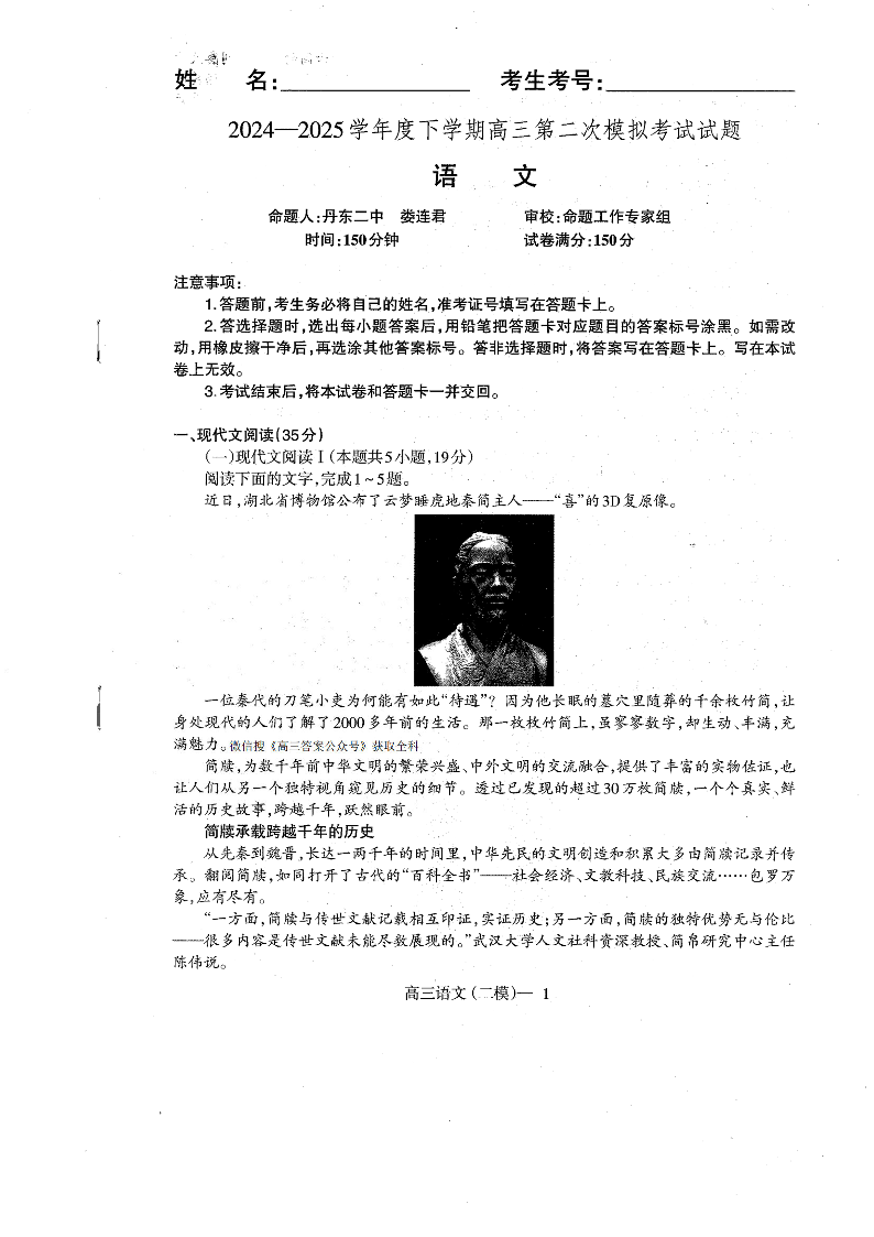 辽宁省协作校2024-2025学年度下学期高三第二次模拟考试 语文.pdf