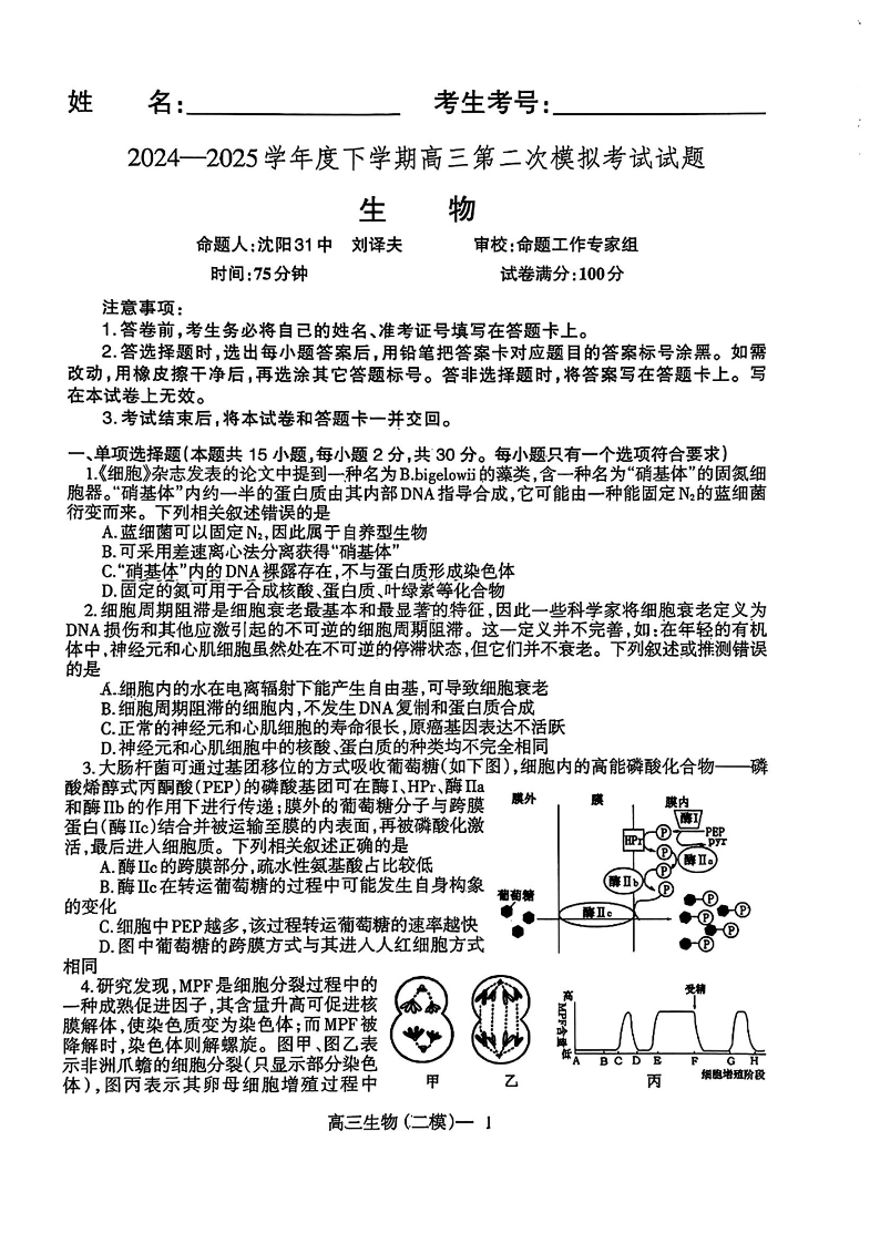 辽宁省协作校2024-2025学年度下学期高三第二次模拟考试 生物.pdf