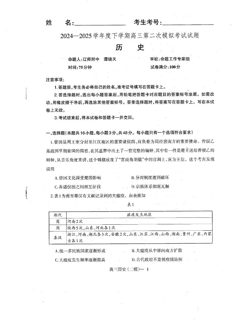 辽宁省协作校2024-2025学年度下学期高三第二次模拟考试 历史.pdf