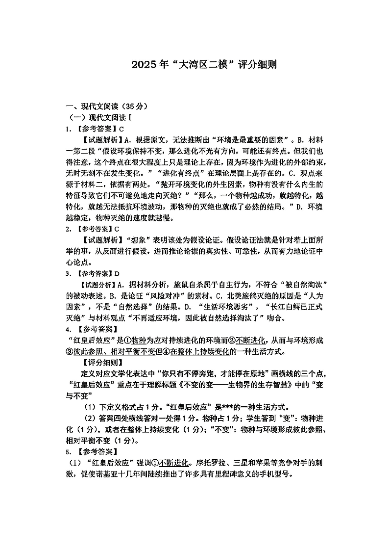 2025大湾区二模 语文答案.pdf