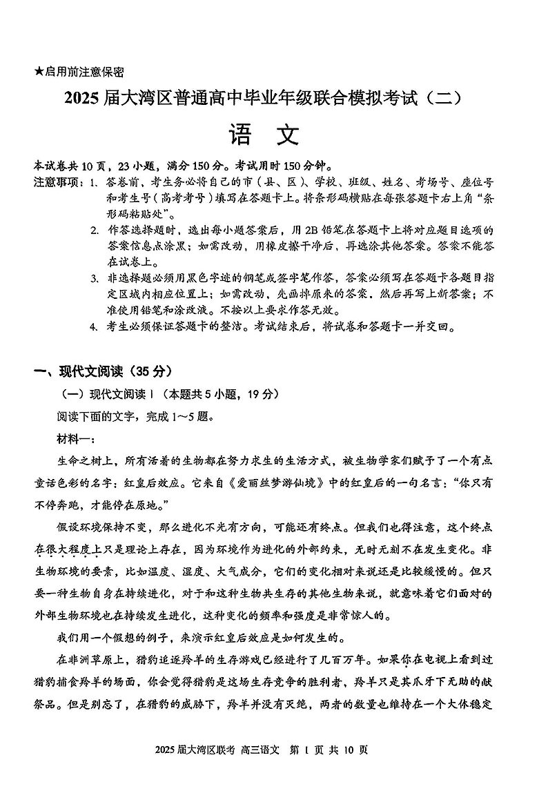2025大湾区二模 语文.pdf