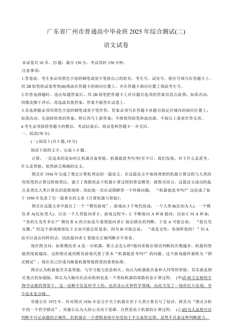 2025年广州市普通高中毕业班综合测试(二)语文.docx