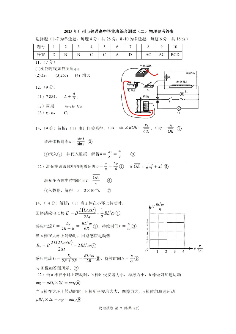 2025年广州市普通高中毕业班综合测试(二)物理答案.pdf