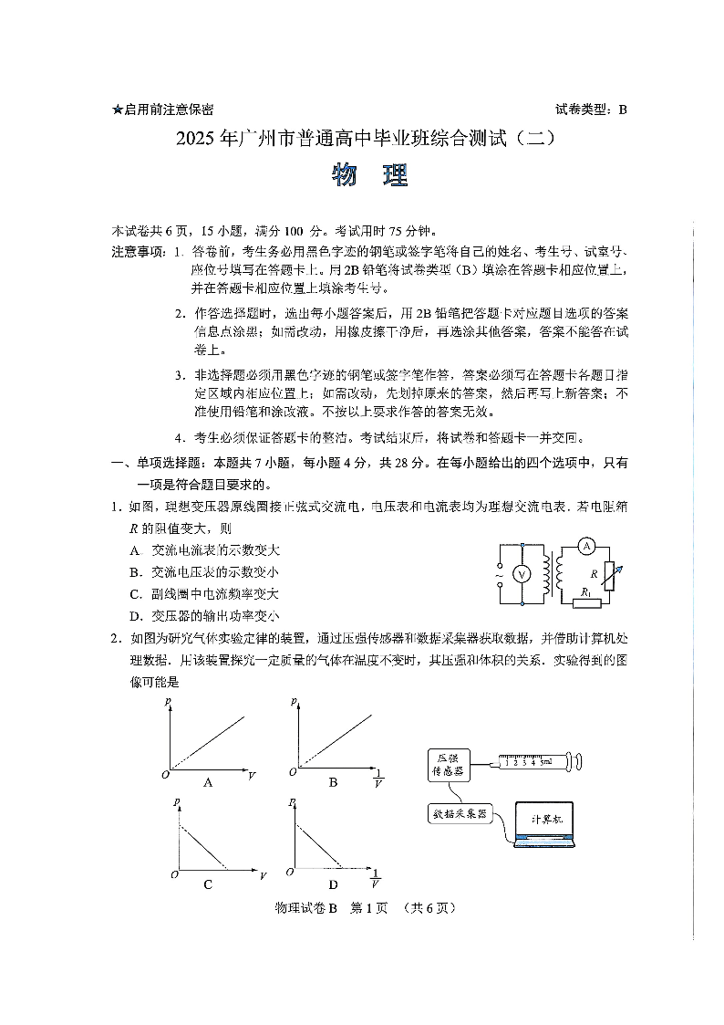 2025年广州市普通高中毕业班综合测试(二)物理.pdf