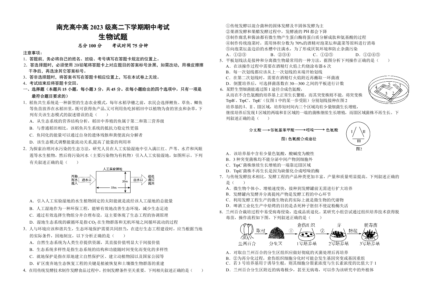 四川省南充高中高2023级高二下学期期中考试 生物.docx