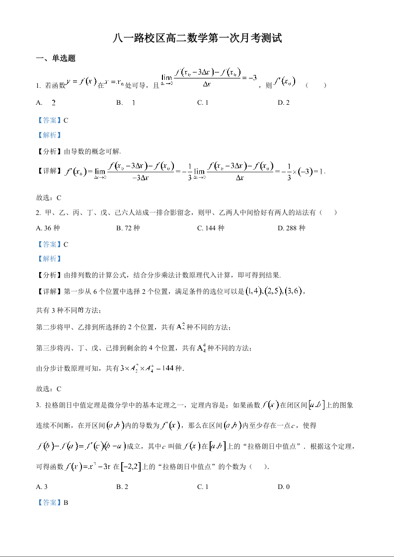 山东省菏泽市第一中学2024-2025学年高二下学期第一次月考 数学答案.docx