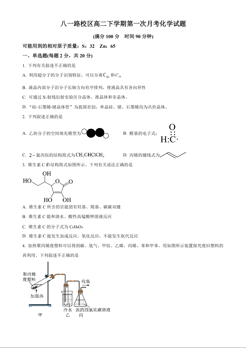 山东省菏泽市第一中学2024-2025学年高二下学期第一次月考 化学.docx