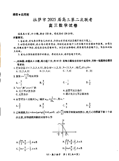 西藏自治区拉萨市2025届高三第二次联考 数学.pdf