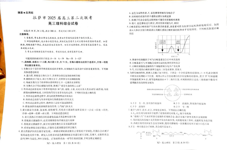西藏自治区拉萨市2025届高三第二次联考 理综.pdf