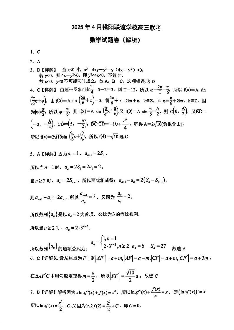 2025年4月稽阳联谊学校高三联考 数学答案.pdf