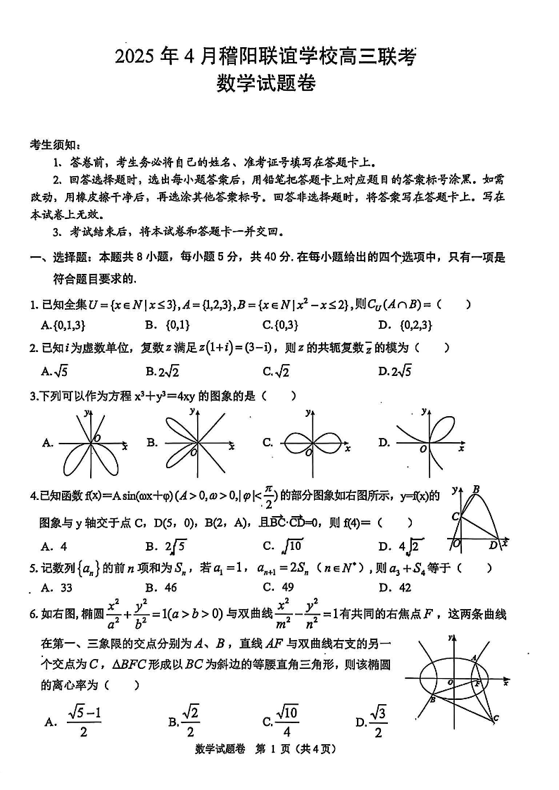 2025年4月稽阳联谊学校高三联考 数学.pdf