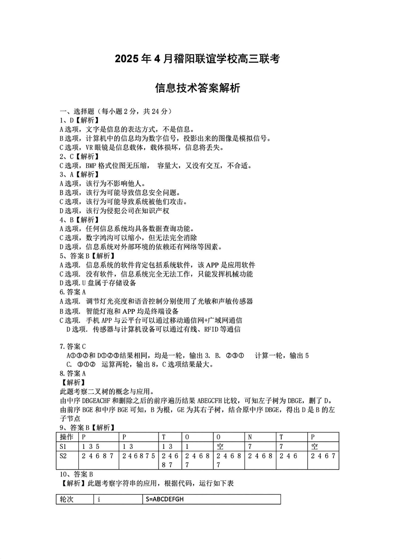 2025年4月稽阳联谊学校高三联考 技术答案.pdf
