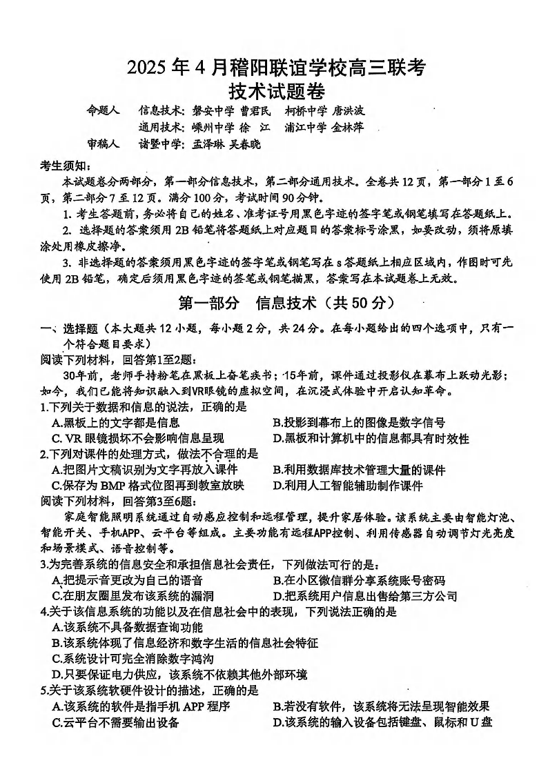 2025年4月稽阳联谊学校高三联考 技术.pdf