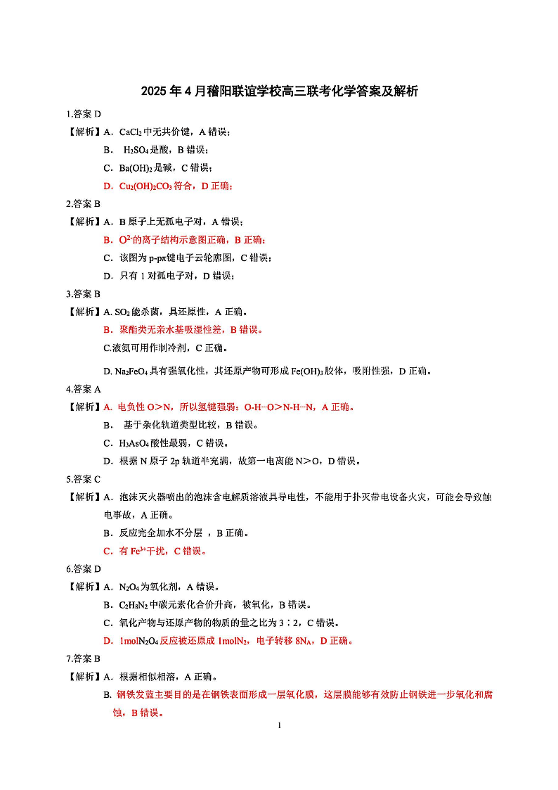 2025年4月稽阳联谊学校高三联考 化学答案.pdf