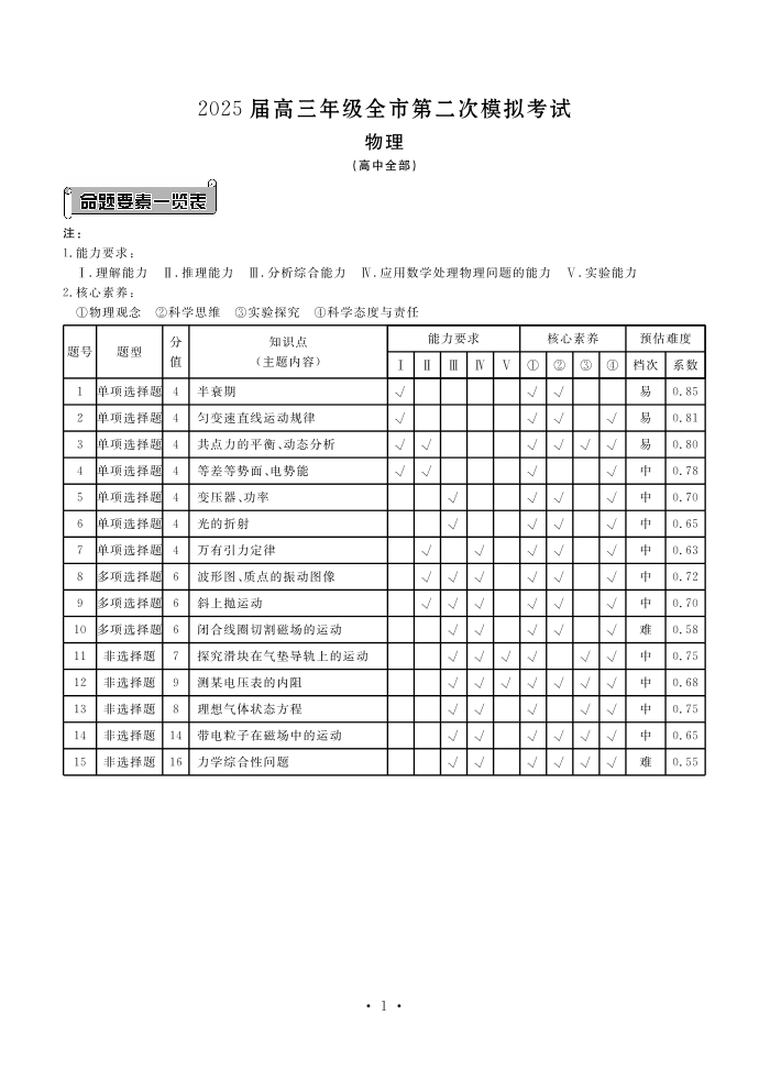 张家口市2025届高三年级第二次模拟考试 物理答案.pdf