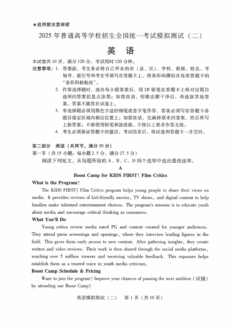 广东省2025年普通高等学校招生全国统一考试模拟测试 英语.pdf