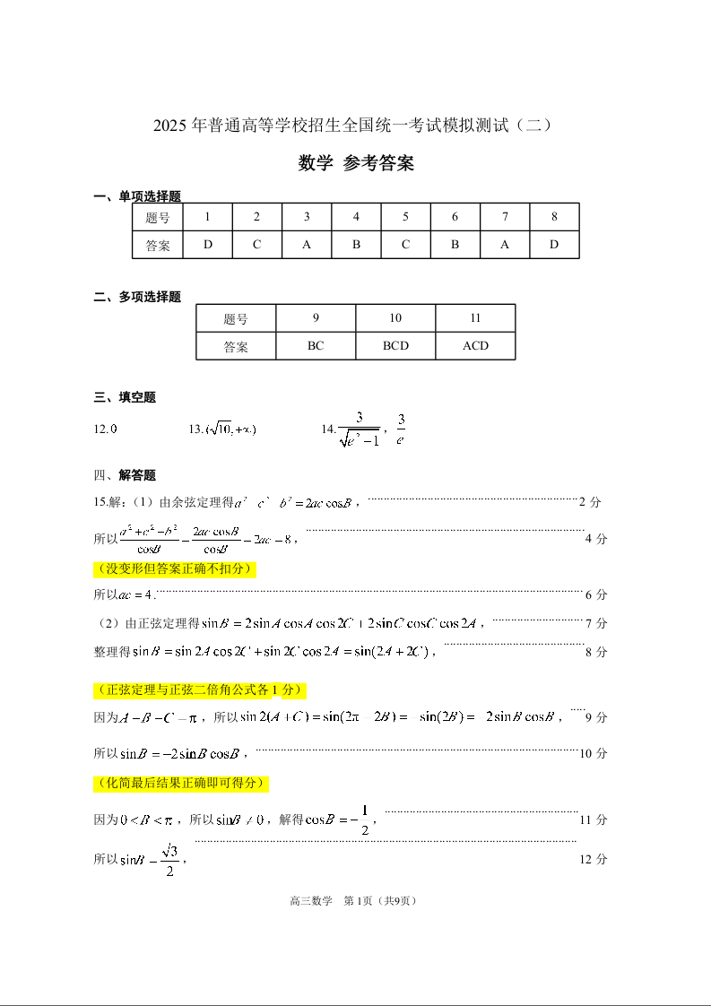 广东省2025年普通高等学校招生全国统一考试模拟测试 数学评分细则.docx
