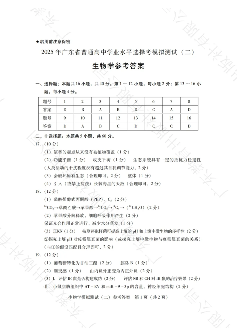广东省2025年普通高等学校招生全国统一考试模拟测试 生物答案.pdf