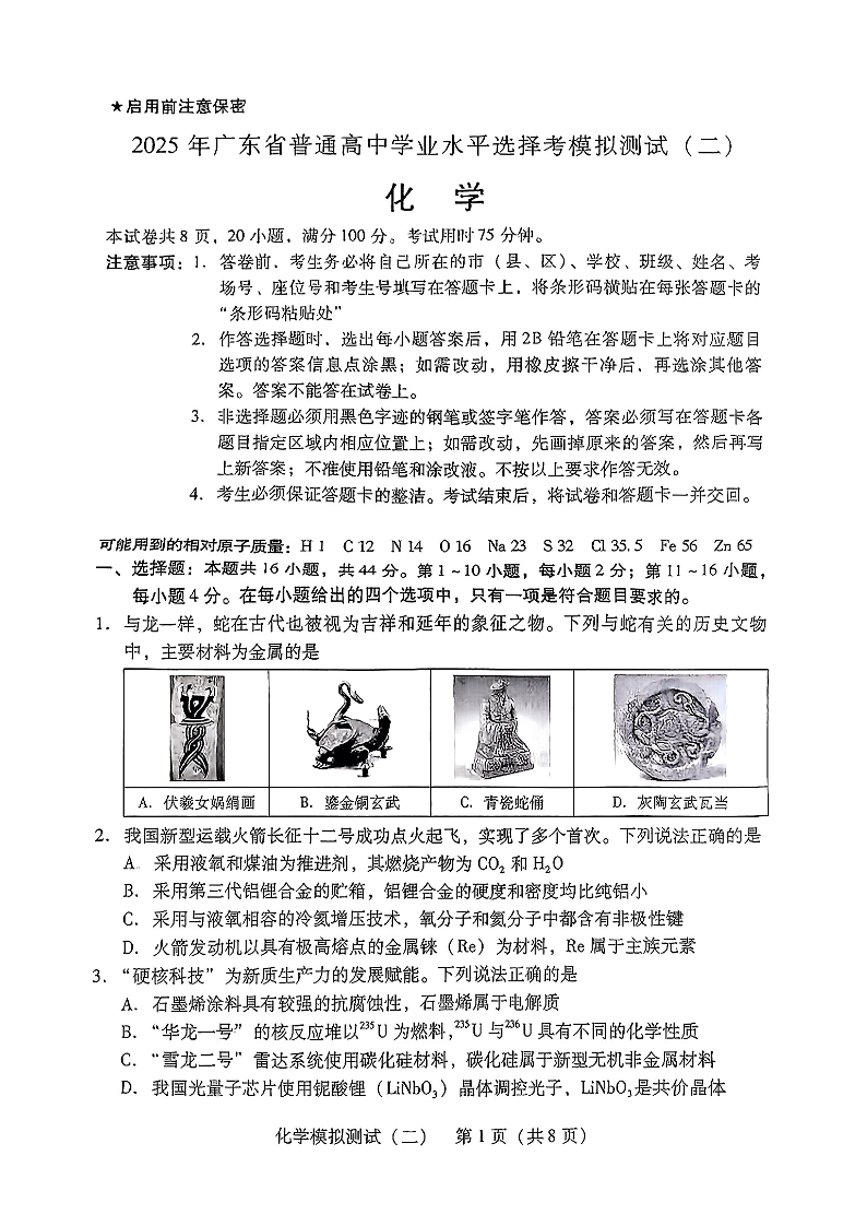 广东省2025年普通高等学校招生全国统一考试模拟测试 化学.pdf