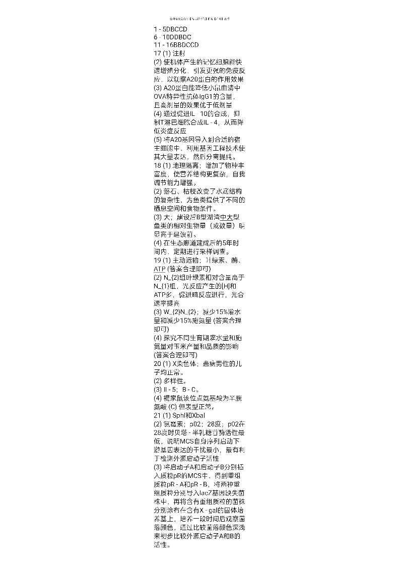 2025年广州市普通高中毕业班综合测试(二)生物答案.pdf