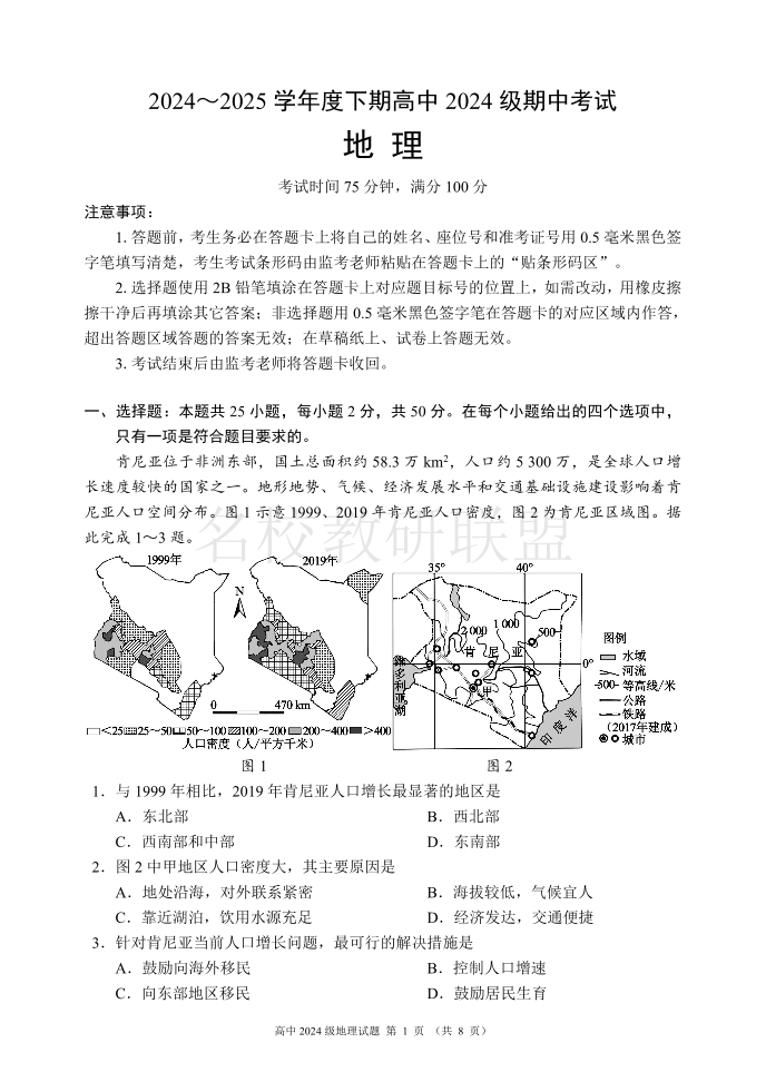 成都市蓉城名校联盟2024-2025学年高一下学期期中考试 地理.pdf