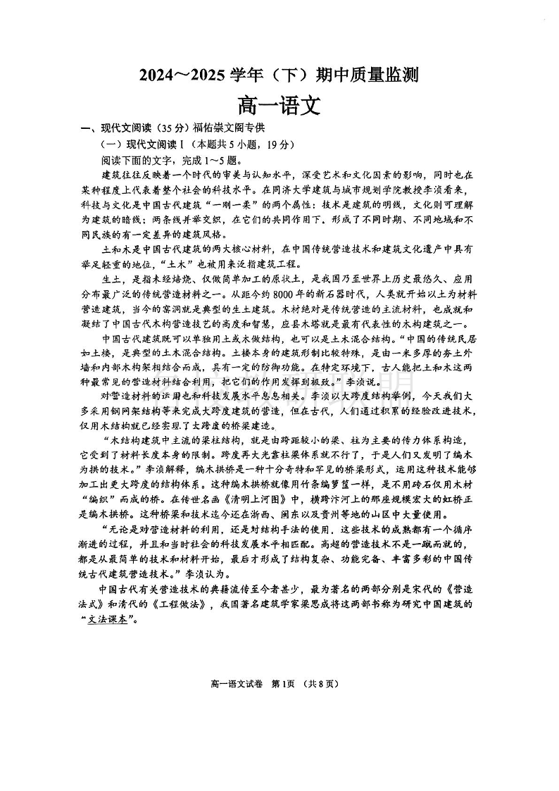 江苏省南通市2024-2025学年高一下学期期中考试 语文(含答案).pdf