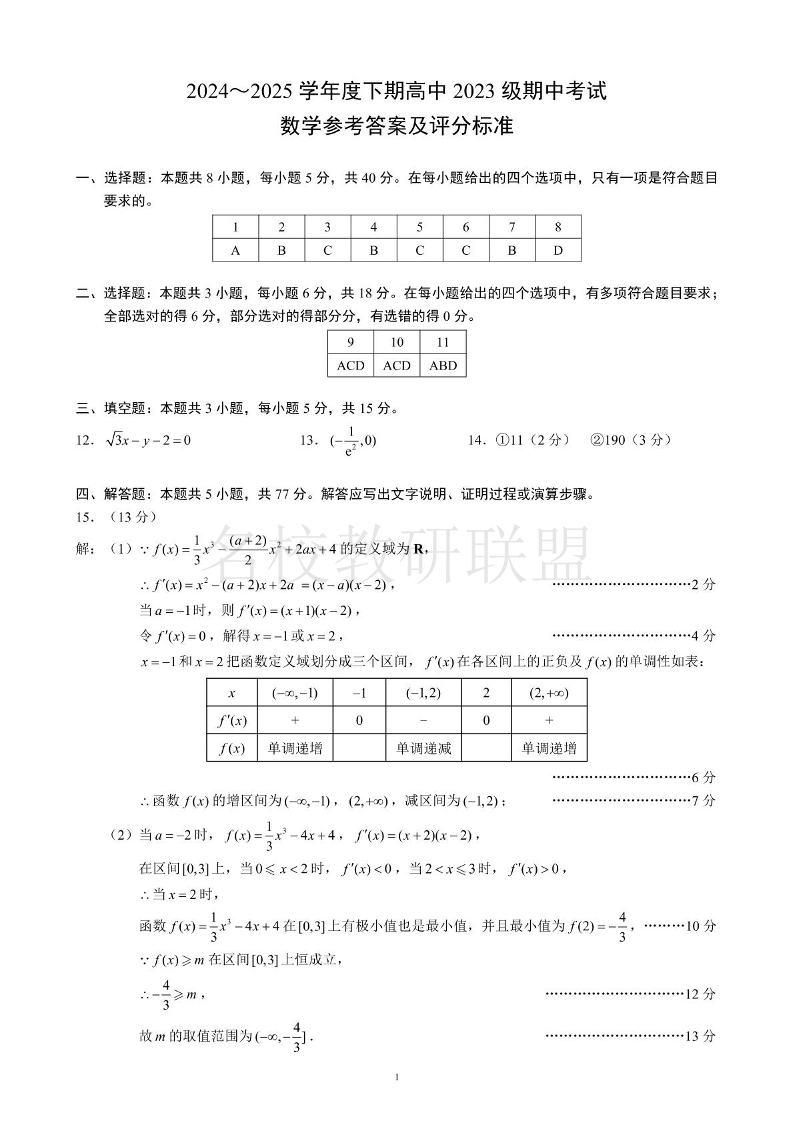 成都市蓉城联盟2024-2025学年高二下学期4月期中考试 数学答案.pdf