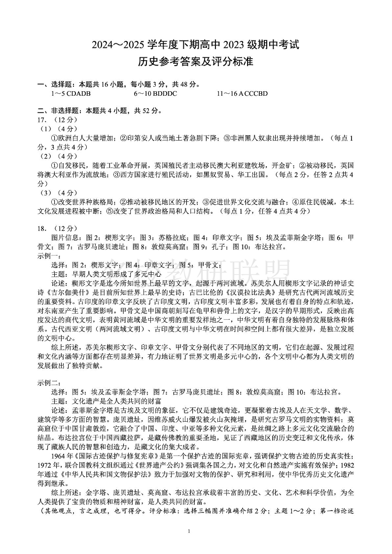 成都市蓉城联盟2024-2025学年高二下学期4月期中考试 历史答案.pdf