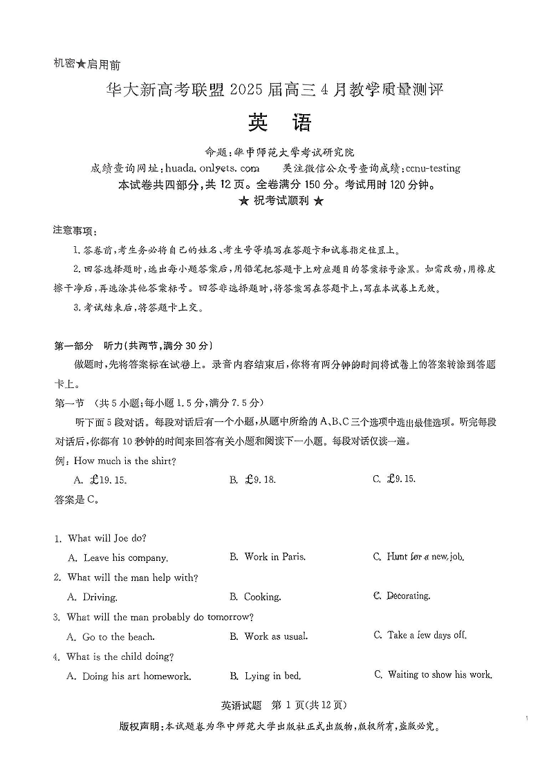 华大新高考联盟2025届高三4月教学质量测评 英语.pdf
